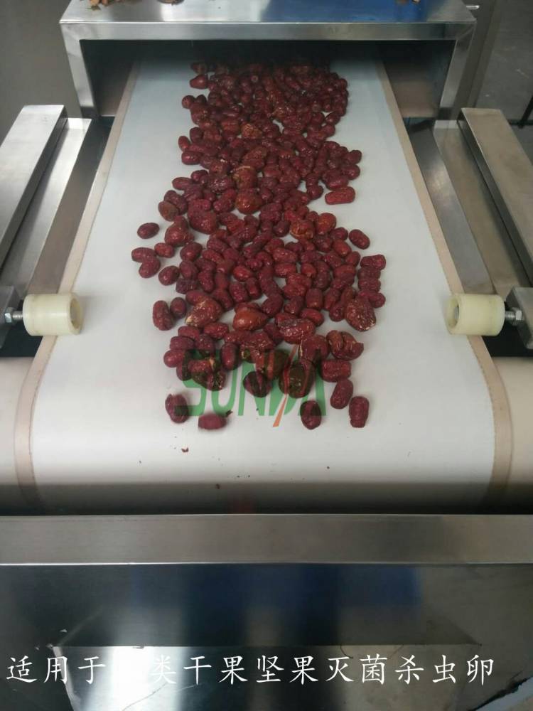 红枣大枣微波杀虫卵机可用于枣片、干枣、巴旦木、枣夹核桃,板栗,核桃,杏仁,李子干,芒果干,杏子干,草莓干等坚果干果的杀菌杀虫。